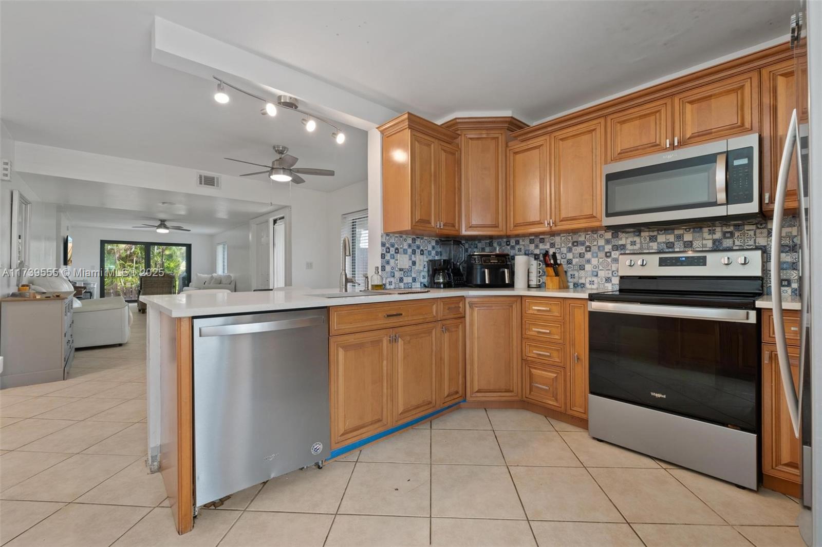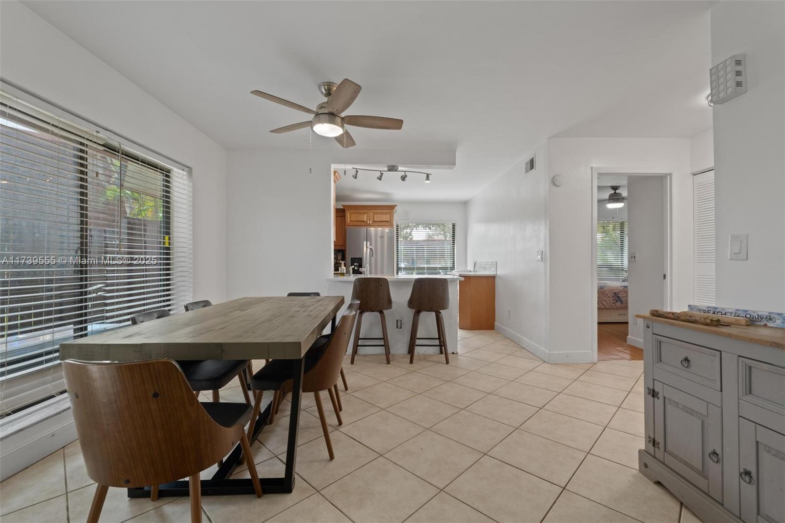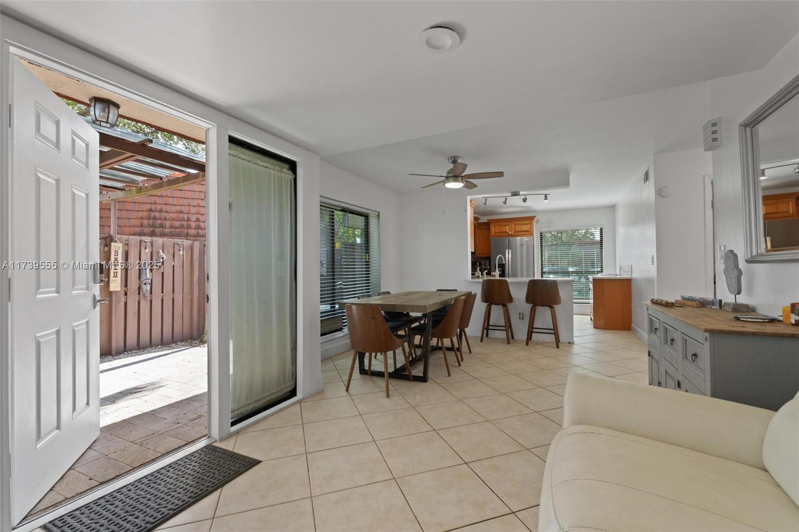 Enjoy a modern kitchen with elegant quartz countertops and stainless steel appliances. The spacious living and dining area is perfect for sharing special moments, and the paved patios offer a private space ideal for relaxing. Additionally, it features impact windows, a new refrigerator, and a renovated roof.