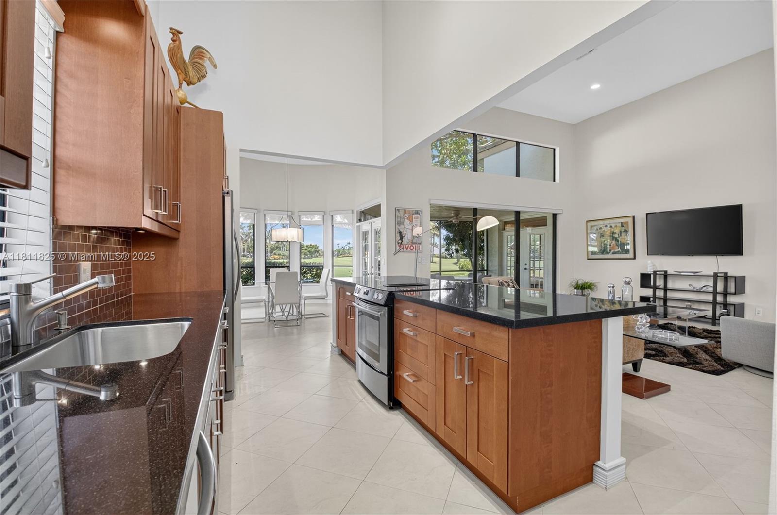 REDUCED FOR QUICK SALE! Stunning unblocked golf course view from this renovated move-in ready Stonebridge Country Club home. Offering 2 b/r's, 2.5 baths + den that easily converts to a 3rd B/R. Open kitchen, vaulted ceilings, screened porch, wet bar & expansive primary with luxurious en-suite with dual vanities, soaking tub & separate shower. Tile flrs thru-out/No Carpet. Located on a 1/4 acre HOA maintained lot. Exceptional amenities inc. 18-hole championship golf course with on-site Tour-golf Pro, owner's restaurant/bar, Har-Tru clay tennis, pickleball, state-of-the-art fitness, vibrant social scene offering cards, sporting events, cultural activities & year-round events for all ages. Club membership required. 1X joining fee/dues. Roof 2012. Water Htr & Electric Panel Box 2025