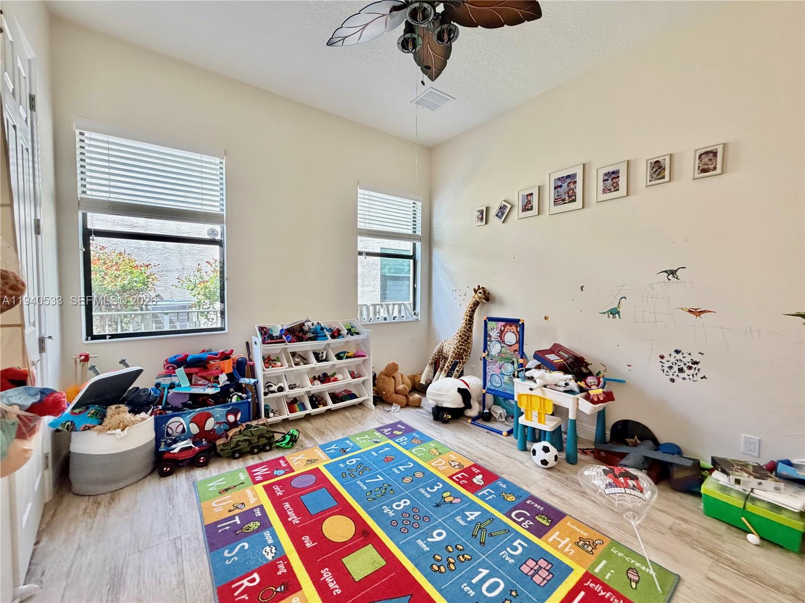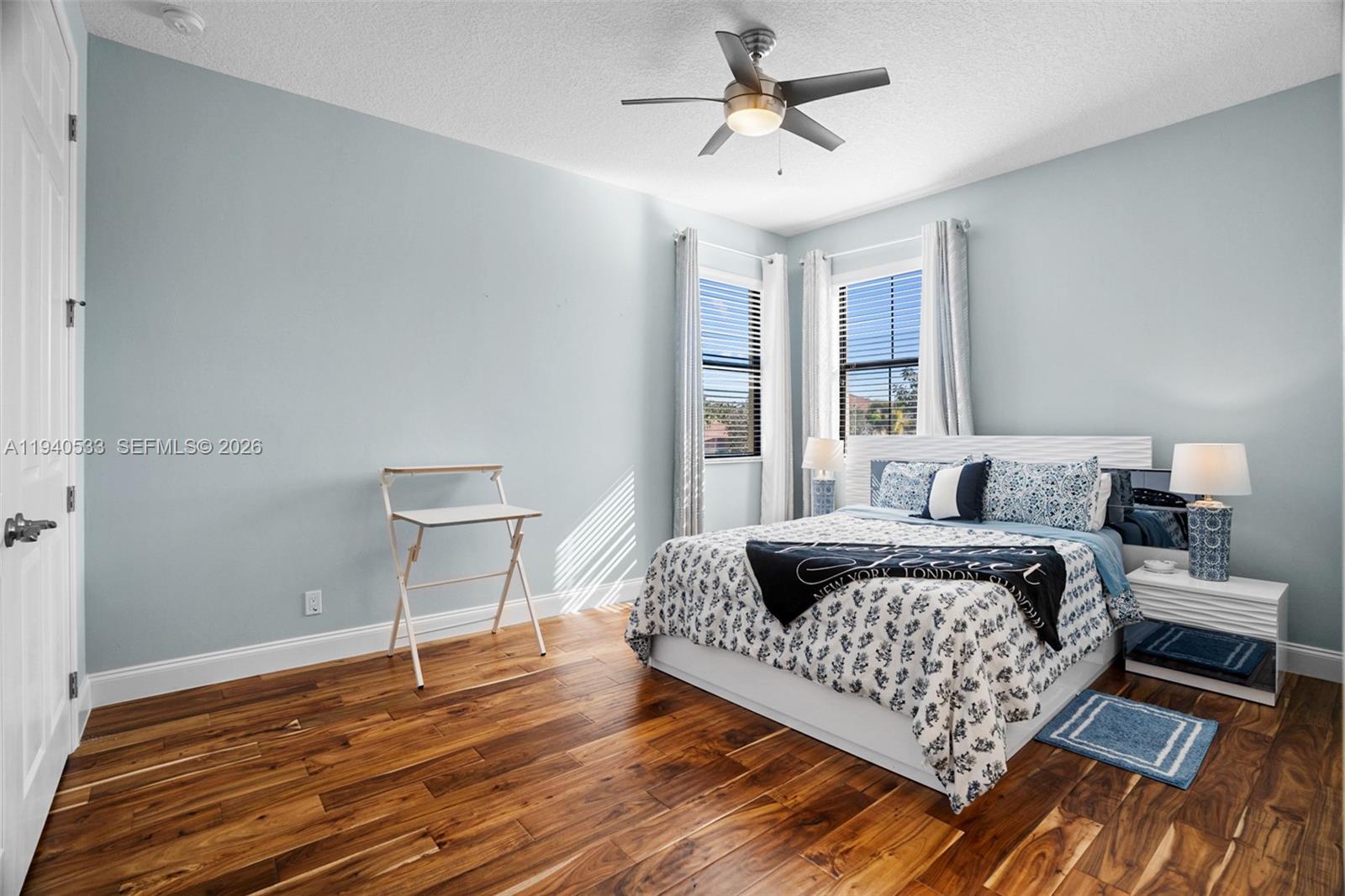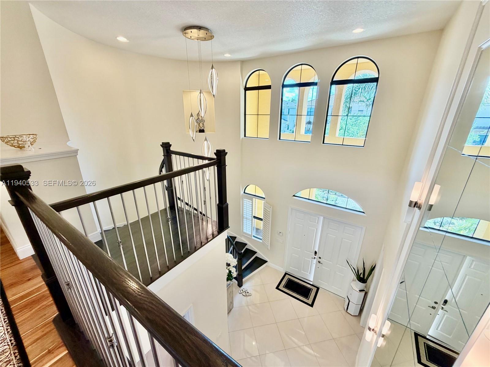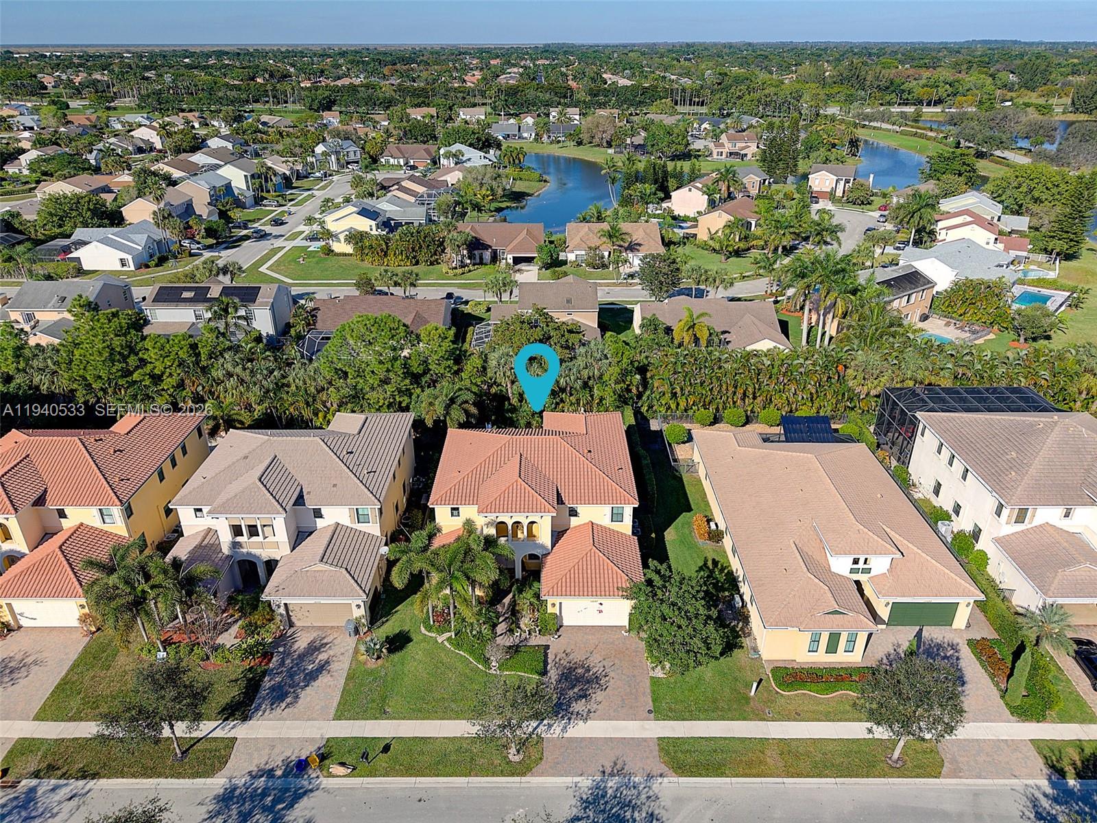 Spacious 5-bedroom, 4.5-bath residence (with potential for up to 7 rooms) including a fully finished office on the first floor and a sitting room off the primary suite that can easily function as an additional bedroom, nursery, or private Den***Located in a prestigious gated community with top A-rated schools, this modern home features a dramatic 20-ft foyer with custom wood and steel staircase, porcelain and wood flooring, and impact windows throughout***The chef’s kitchen offers a large island, double ovens, coffee bar, stainless steel appliances, soft-close cabinetry, and tiled backsplash***Step outside to a private resort-style backyard surrounded by lush greenery featuring a heated saltwater pool, cascading waterfall, sun deck, jacuzzi, and automated patio screens***Additional highlights include a two-car garage with epoxy flooring, wall A/C, refrigerator, generator switch, and low HOA of only $235/month.