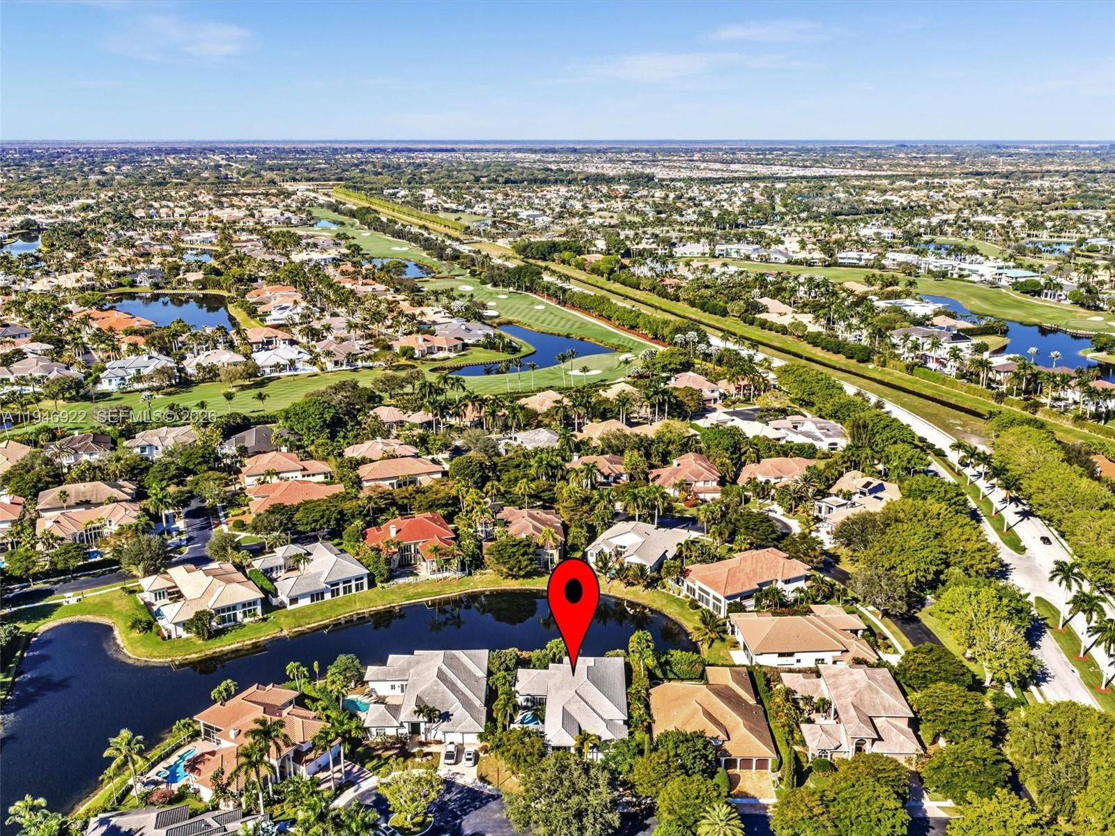 Magnificent one-story courtyard waterfront home in the exclusive gated community of Seasons, located in Central Boca Raton.