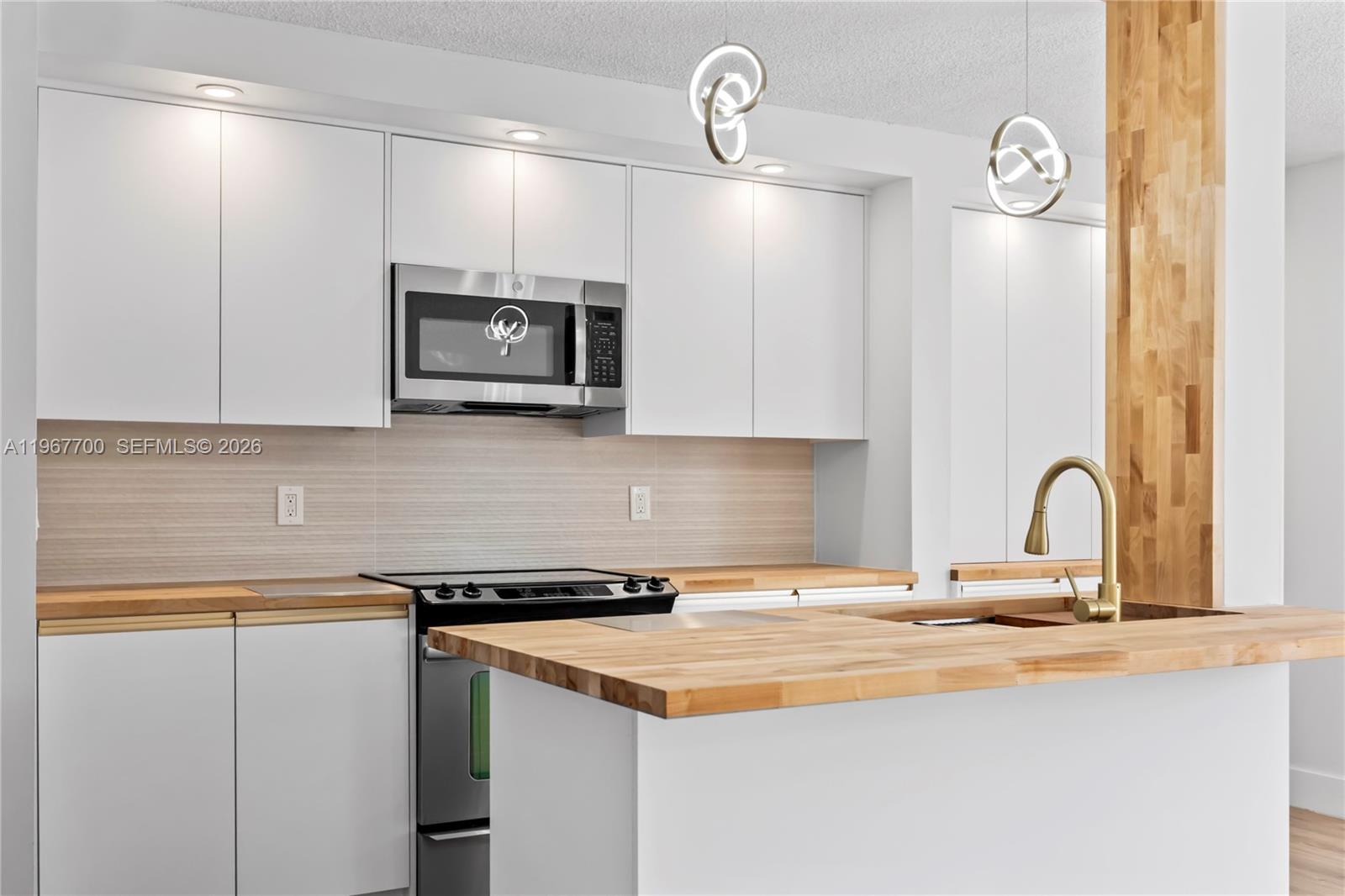 Discover this fully renovated 2-bedroom, 2-bath residence offering true turn-key living in a desirable 55+ community. Completed in 2026 and never lived in since, buyers will be the first to enjoy every brand-new upgrade. Designed for comfort and style, the open-concept kitchen flows seamlessly into the living area and showcases brand-new appliances and beautiful wood countertops. Laminated flooring runs throughout, paired with elegantly finished walls and abundant natural light that creates a bright, welcoming atmosphere. The bathrooms have been tastefully modernized, and generous walk-in closets provide ample storage space. Enjoy your private screened balcony with a direct pool view