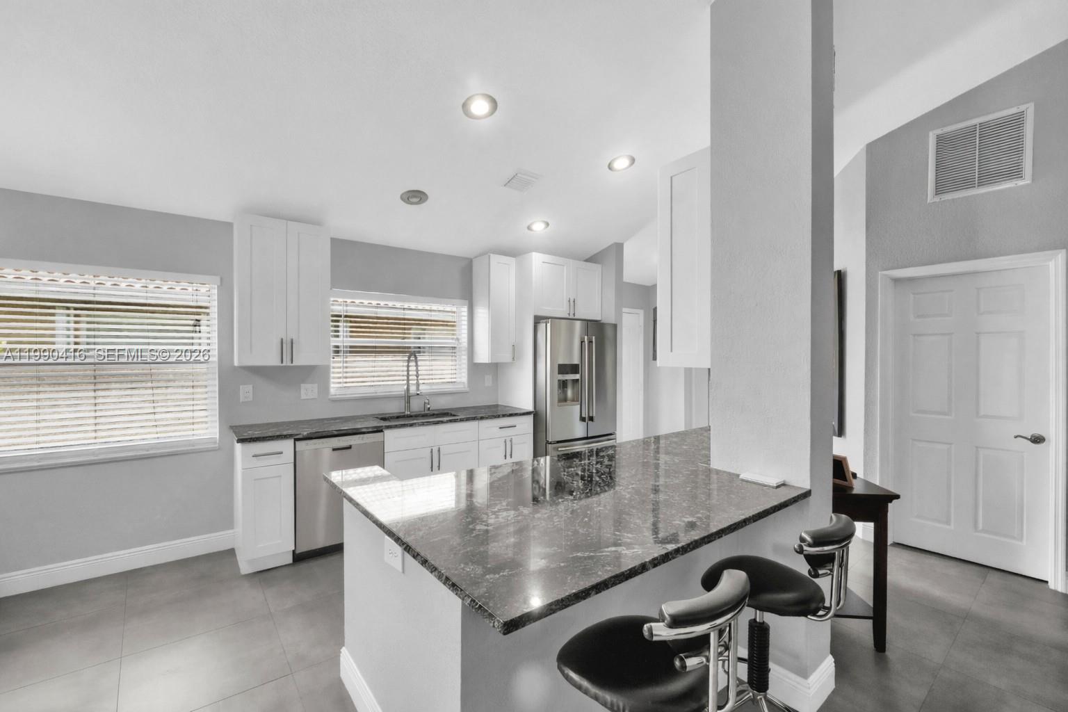 A great opportunity on a well-maintained 2BR/2BA villa in highly desirable Palm Beach Bath & Tennis! Flexible layout with lots of possibilities featuring over 1,450 sq. ft. of bright, comfortable living space in a gated, all-ages, pet-friendly community. Home features a beautiful modern kitchen with granite countertops, newer stainless steel appliances spacious living and dining areas, an additional family room, vaulted ceilings, and a desirable split-bedroom floor plan. The primary suite offers wood floors, a large walk-in closet, and an ensuite bath with double vanity, shower, and soaking tub. Additional highlights include a dedicated laundry room and 2-car garage. Prime location, FHA and VA approved, with resort-style amenities including pool, spa, clubhouse, exercise room, tennis, and basketball courts. Prime location and best value in the area.
