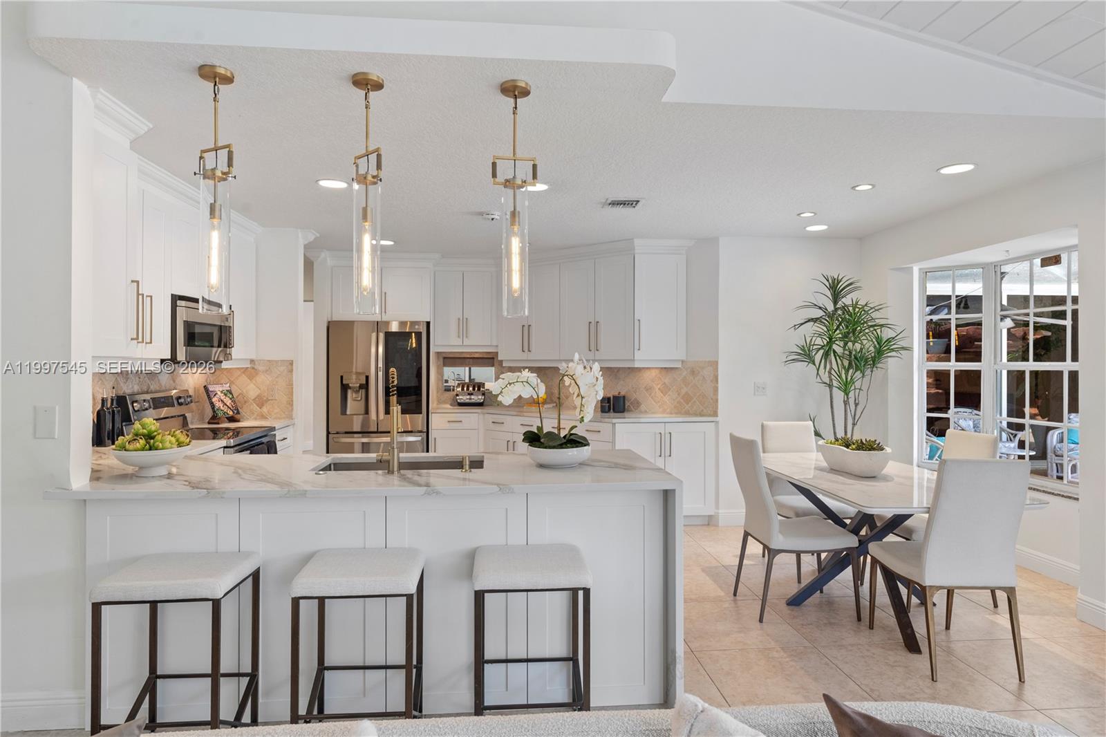 ONLY $221/Month HOA! Unveil your captivating backyard oasis on this corner lot! This beautifully renovated home boasts a resort-style water park and a pickle ball/tennis/basketball court. Enjoy open-concept design with vaulted ceilings and sliding door walkouts from every room facing the resort style pool. Open concept kitchen is fully remodeled with new quartz countertops with waterfall and stainless steel appliances. New bathrooms with a Jacuzzi jet tub in the master bedroom. All appliances and both air conditioning systems are new. Professionally landscaped and highly upgraded throughout.