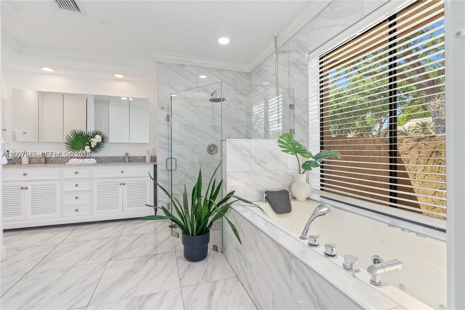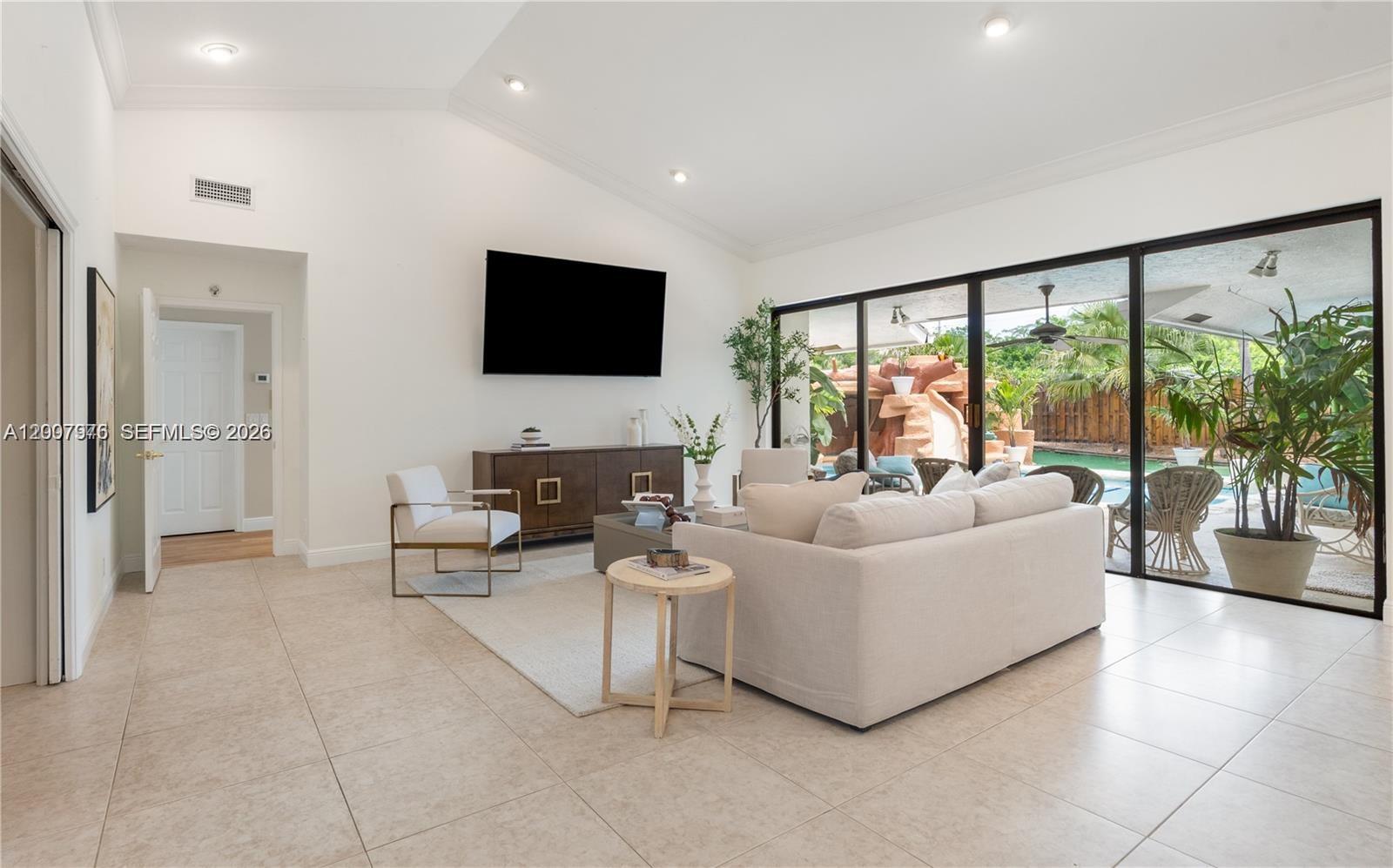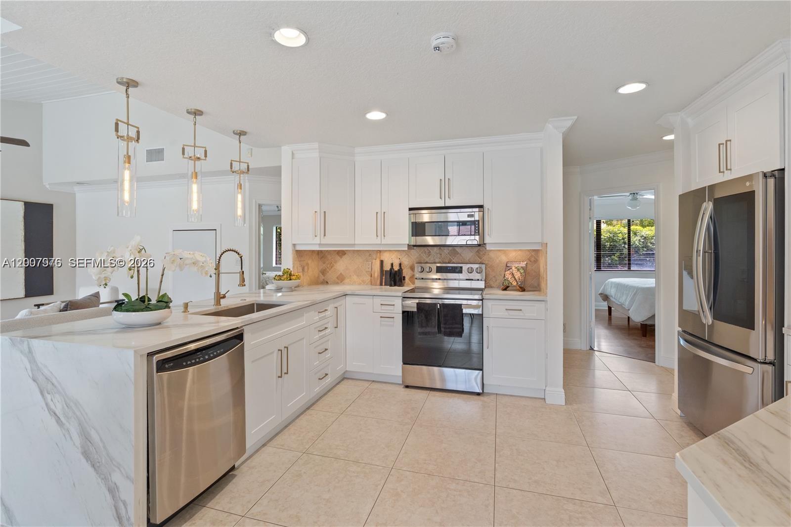 ONLY $221/Month HOA! Unveil your captivating backyard oasis on this corner lot! This beautifully renovated home boasts a resort-style water park and a pickle ball/tennis/basketball court. Enjoy open-concept design with vaulted ceilings and sliding door walkouts from every room facing the resort style pool. Open concept kitchen is fully remodeled with new quartz countertops with waterfall and stainless steel appliances. New bathrooms with a Jacuzzi jet tub in the master bedroom. All appliances and both air conditioning systems are new. Professionally landscaped and highly upgraded throughout.