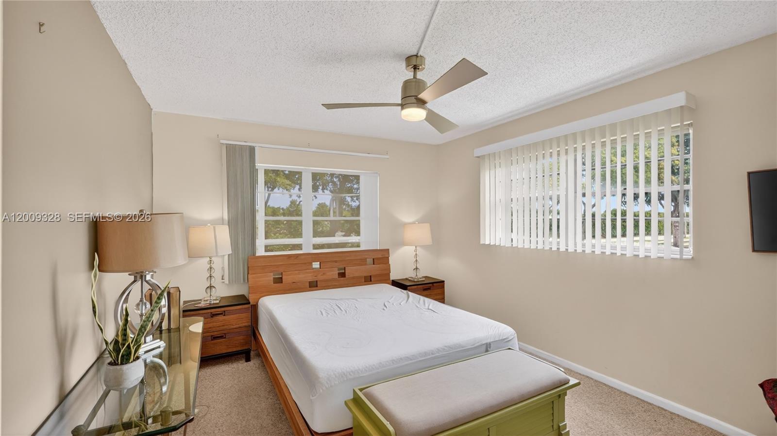 Step into a bright, move-in ready 2-bedroom, 1.5-bath residence in the gated 55+ community of Century Village Boca Raton, where comfort meets convenience. This second-floor unit offers 840 sq ft of well-laid-out living space plus a private enclosed patio with peaceful green views, perfect for relaxing year-round. Inside, you’ll find updated flooring in the main areas, a clean, functional kitchen with stainless steel appliances, spacious bedrooms with great storage including a walk-in closet, and a walk-in tub/shower for ease and accessibility. Offered fully furnished for a seamless move-in, the building features elevator access, laundry on every floor, assigned parking, and ample guest spaces. The HOA includes cable, internet, water, and access to an unmatched amenity package with a massive clubhouse, fitness center, theater, pools, tennis, pickleball, and endless social activities, all within a secure, guard-gated community with transportation and on-site conveniences.