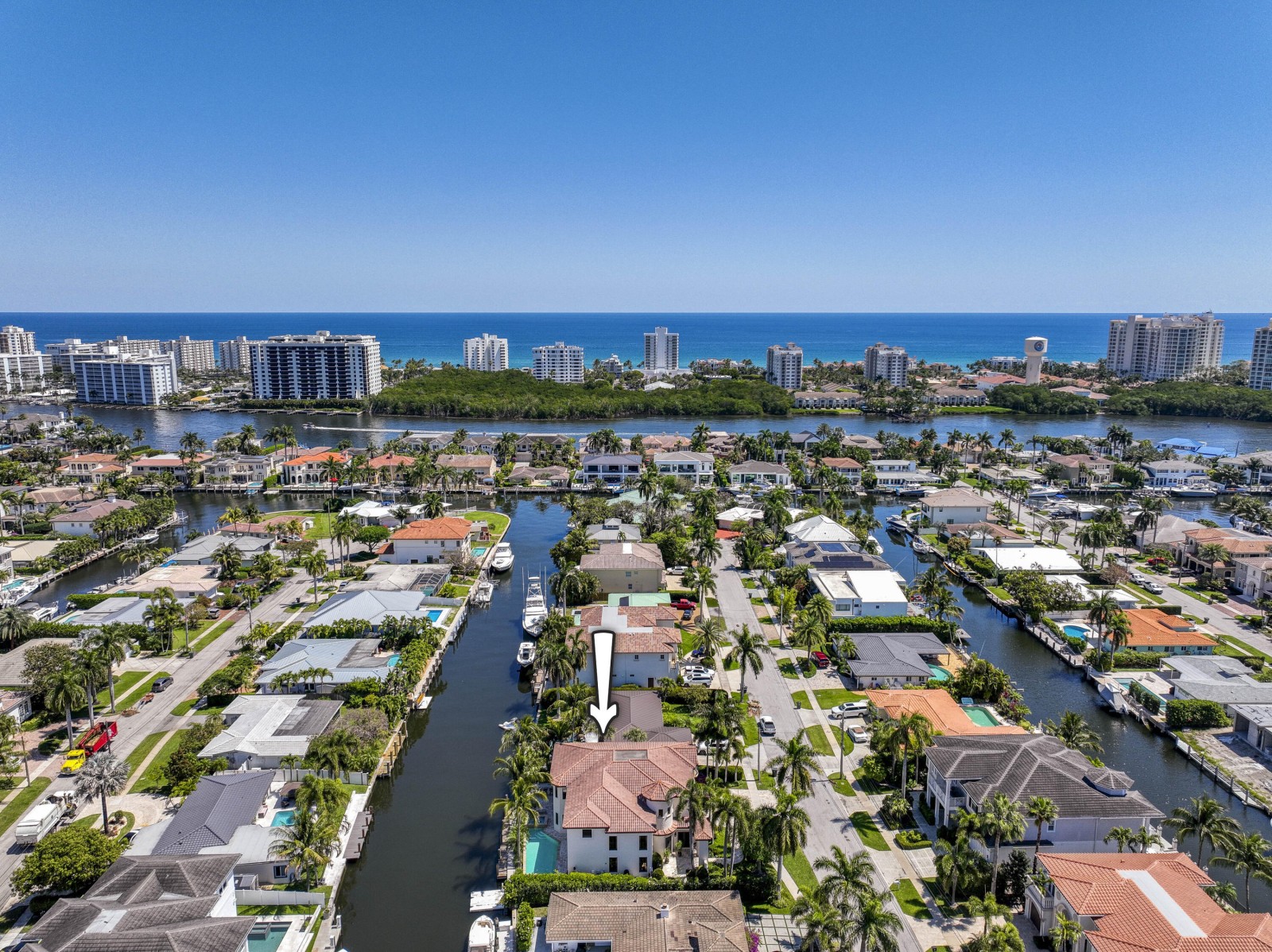 Luxury Waterfront Living in Boca Harbour! Welcome to an extraordinary waterfront estate where timeless Mediterranean elegance meets modern luxury in the prestigious community of Boca Harbour. Perfectly positioned on approximately 83 feet of frontage with direct ocean access and no fixed bridges, this impeccably maintained residence offers the ultimate South Florida boating lifestyle. Spanning approximately 4,248 square feet, this magnificent four-bedroom home makes a breathtaking first impression with a grand domed foyer and soaring 22-foot ceilings. Natural light pours through expansive floor-to-ceiling windows, illuminating the sophisticated living room anchored by a beautifully restored limestone fireplace. The elegant dining room captures serene waterfront views, creating the perfect setting for unforgettable gatherings. Designed for both everyday living and upscale entertaining, the first floor features a versatile office/den or guest suite with its own private entrance and a full adjacent bath. The spectacular chef's kitchen, completely redesigned in 2022, is the heart of the home, showcasing professional-grade appliances, a built-in coffee station, and an impressive 12-foot custom island ideal for hosting family and friends. The adjoining great room opens seamlessly to the outdoor living spaces, creating a true indoor-outdoor experience. Step outside to your resort-style waterfront retreat, where a sparkling pool and spa overlook the tranquil canal. The fully equipped outdoor kitchen is designed for effortless entertaining and features a professional stainless-steel grill, refrigerator, ice maker, dishwasher, cold beverage storage, and a beautifully tiled bar area. An elevator provides convenient access to the second level, where the luxurious primary suite offers a private sanctuary complete with a sitting area, elegant tray ceilings, expansive custom walk-in closets, and a fully renovated spa-inspired bathroom. Step onto your private balcony and enjoy peaceful water views. Spacious guest suites provide comfort and privacy with oversized windows, custom closets, and beautifully updated en-suite bathrooms. With significant upgrades throughout, this residence delivers the perfect blend of luxury, comfort, and peace of mind in one of Boca Raton's most desirable waterfront communities.