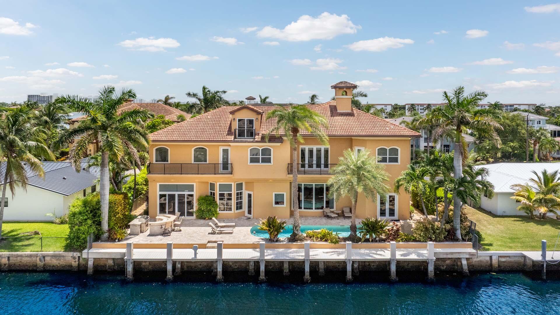 Welcome to 929 Banyan Drive, a home that blends timeless craftsmanship with the ease of waterfront living. Set on 90 feet of deepwater frontage in the desirable Delray Beach enclave of Tropic Isle, this substantial residence offers five bedrooms plus a private office, three-car garage, and a dedicated home theater. The well-appointed kitchen, designed for both function and style, opens seamlessly to a spacious family room, creating the heart of the home. Expansive windows and outdoor living areas frame tranquil water views, while solid construction and thoughtful design ensure comfort, privacy, and lasting quality. Perfect for boating, entertaining, or simply relaxing by the water, this home offers a refined yet welcoming lifestyle in an exceptional location.