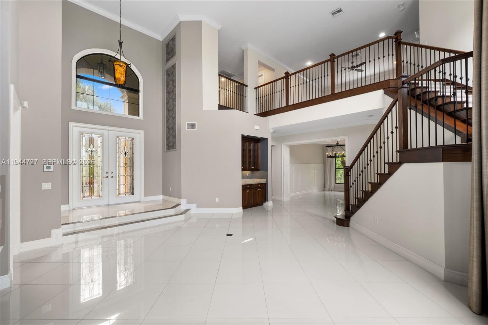 Gorgeous oversized property in Seven Bridges. Vaulted ceilings, lots of natural light, formal dining room, wine cellar, three car garage, whole house generator, outdoor kitchen, powered retractible screens, chefs kitchen with subzero fridge, high end appliances and gigantic kitchen island. Separate large office and additional spacious room with full bathroom. Additional loft area with built-in cabinetry. Master bedroom has HIS and HER walk-in closets and HIS and HER bathrooms. Great lot, great view and great community with tennis courts, gym, fitness rooms, restaurant and many more. Vacant an easy to show.